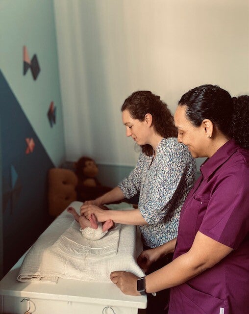 "Het was een fijne eerste week! Uitleg was super en geeft ons handvatten en vertrouwen nu verder voor Jonas te zorgen. Samantha was geduldig, lief, vriendelijk en deskundig."